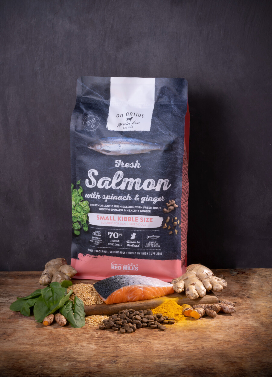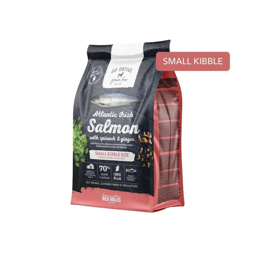 | Deklaracija izdelka | DEKLARACIJA: Sestava: losos (64%; sveža 40%, dehidrirana 24%), krompirjev škrob, sladki krompir, lososovo olje 7%, grahov škrob, laneno seme, sušene rjave alge, hidrolizirane beljakovine jeter 1%, natrijev klorid, izvleček juke, kvas, sušeno jabolko, sušena špinača (enakovredno 5% sveže špinače), sušen ingver (enakovredno 4% svežega ingverja), glukozamin hidroklorid, hondroitin sulfat. ZELIŠČA: lucerna, sušene borovnice, sušeno korenje, sušene brusnice, sušen ognjič, origano, sušeni šipek, kurkuma, juka. Analitske sestavine: surove beljakovine 30%, surove maščobe 22%, surove vlaknine 2.0 %, surovi pepel 7.5%, vsebnost vlage (maksimalno) 10%, kalcij 1.8%, fosfor 1.2%, EPA 0,9%, DHA 1,4%, glukozamin 600mg/ kg, hondroitin 450mg/ kg. Dodatki (na kg): nutritivni dodatki: vitamini in provitamini: vitamin A 24.000 IU (3a672a), vitamin D3 2.000 IU (3a671), vitamin E 250IU (3a700 Elementi v sledovih (na kg): baker – bakrov (II) sulfat pentahidrat 7mg (3b405), selen - natrijev selenit 0,15mg (3b801), železo – železov (II) sulfat monohidrat 75mg (3b103), mangan – manganov (II) oksid 40mg (3b502), cink - cinkov oksid 70mg (3b605), cink - cinkov kelat aminokislinski hidrat 30mg (3b606), jod - brezvodni kalcijev jodat 1.5mg (3b202) Antioksidanti: naravni antioksidanti. Hranilna vrednost (100g): 420kCal |