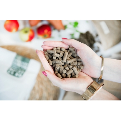 | Deklaracija izdelka | Popolna krmna mešanica za pse. Sestava: raca (32,5%; sveža: 17,5%, sušena 15%), sladki krompir (28%), grah (17%), hidrolizirana želatina, piščančja maščoba, pesina pulpa, pivski kvas, sušena jabolka (1,7%), lososovo olje ( 0,5%), MOS (manan oligosaharidi, 0,5%), jajce v prahu, izvleček cikorije (vir FOS, 0.2%), sušene alge (0,2%), hruške (0,2%), borovnice (0,2%), brusnice (0,2%), kamilica (0,2%), koromač (0,2%), kopriva (0,2%), regrat (0,2%), laneno olje, glukozamin (300 mg/kg), hondroitin 300 mg/kg, juka. *Piščančja maščoba - ker je maščoba filtrirana in očiščena, ne povzroča alergijskih reakcij oz. je primerna za uživanje pri psih, intolerantnih na piščančjo beljakovino. Tovrstna maščoba je v hladno stiskanih peletih Kivo uporabljena kot ena najbolj kakovostnih in najlažje prebavljivih maščob poleg lososovega olja za pse. Analitske sestavine: surove beljakovine 26%, surove vlaknine 4.9%, surove maščobe 12%, surovi pepel 7%, vsebnost vlage 8%, kalcij 1.5%, fosfor 0.9%, EPA 0.1%, DHA 0.1%. Dodatki (na kg): nutritivni dodatki: vitamini in provitamini: vitamin A 18.000 IU (3a672a), vitamin D3 1.800 IU (3a671), vitamin E 500IU (3a700). Elementi v sledovih: baker – bakrov (II) sulfat pentahidrat 10mg (3b405), baker - bakrov kelat glicin hidrata 5mg (E4), cink - cinkov sulfat monohidrat 100mg (3b605), cink - cinkov kelat glicin hidrata 50mg (3b608), železo – železov (II) sulfat monohidrat 70mg (3b103), železo - železov kelat glicin hidrata 35mg (E1), mangan – manganov (II) oksid 50mg (3b502), mangan (manganov kelat glicin hidrata: 25mg (3b506), jod - brezvodni kalcijev jodat 2mg (3b202), selen - natrijev selenit 0,1mg (3b801), tavrin 1000 mg (2b16056), L-karnitin: 50mg (3a910). Antioksidanti: naravni antioksidanti. Senzorični dodatki: izvleček juke (Yucca Schidigera) 160mg. Hranilna vrednost: 3316 kcal/kg. |
