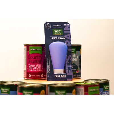 LET‘S TRAIN FoodTube – tuba za hranjenje je odličen pripomoček za trening, nagrajevanje na sprehodu, potovanju ali kjerkoli na poti. Tubo napolnimo s surovo ali mokro hrano, ob uporabi odpremo pokrov in stisnemo.
