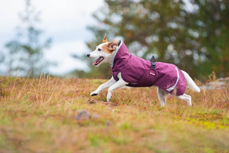 Vzdržljiv plašč, ki psu omogoča neovirano gibanje in se mu popolnoma prilega. Z odprtino za rep in pripenjanje na ovratnico, velikim ovratnikom ter odsevnimi trakovi. Pomppa plašči nimajo elastik za pričvrstitev na zadnje tačke, saj sama oblika in zasnova plašča omogočata popolno prileganje in pričvrstitev; na ta način psu omogočajo popolno svobodo gibanja. Plašči so narejeni iz antistatičnih in vodoodpornih materialov (vodni stolpec 5.000mm). Vsi materiali so primerni za pranje v pralnem stroju in so hitro sušeči.