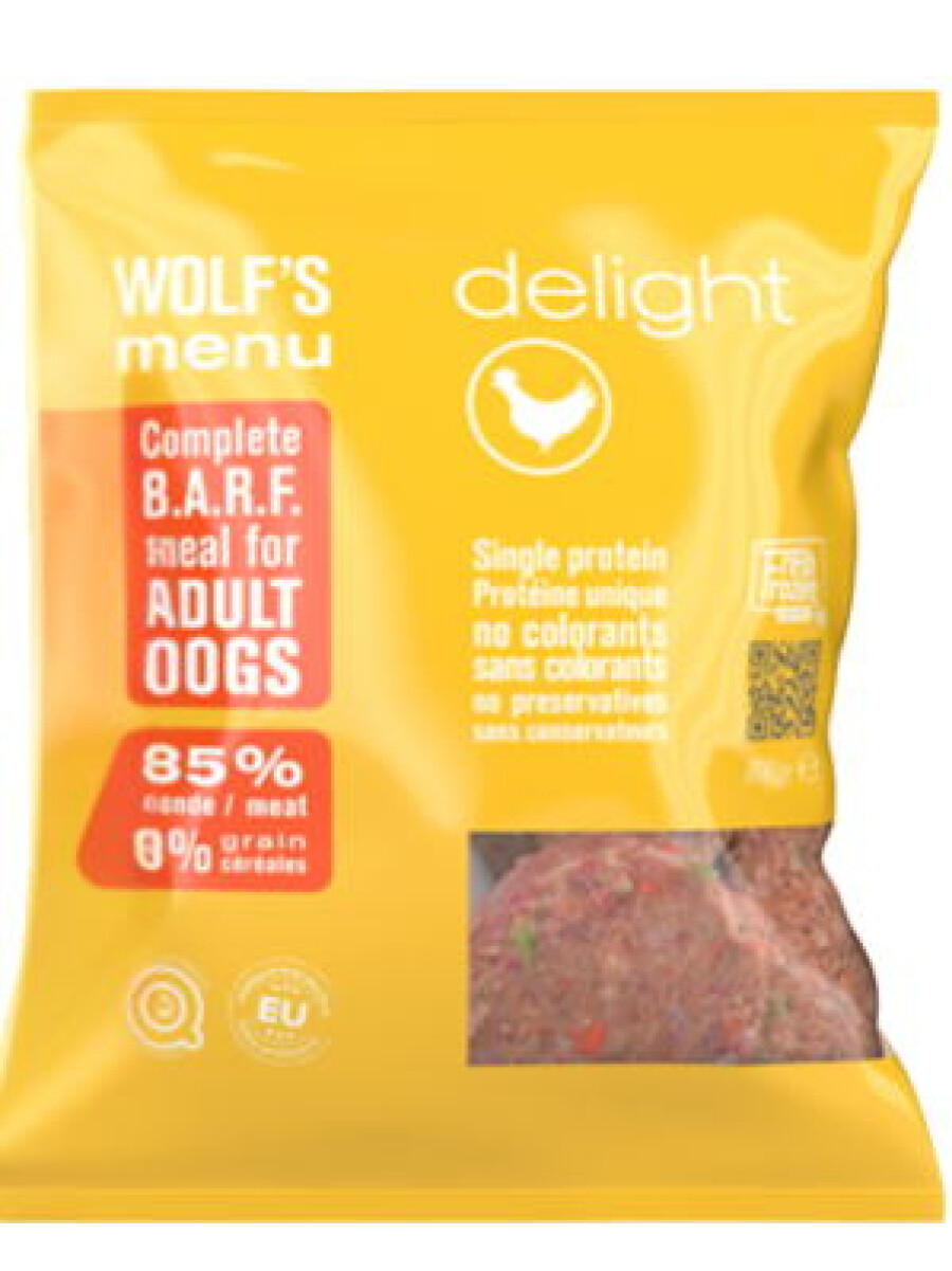 | Navodila za uporabo | Pred uporabo popolnoma odtajajte izdelek. Po odtajanju shranjujte v hladilniku do 24 ur. Vedno mora biti na voljo sveža pitna voda. Nikoli ne spreminjajte hrane naenkrat, temveč postopoma povečujte odmerek nove hrane. Samo za uporabo kot hrana za hišne živali. Hraniti ločeno od živil. Po ravnanju s tem izdelkom umiti roke ter očistiti orodje, pripomočke in površine. Navodilo za hranjenje: tabela z dnevnim vnosom hrane odtisnjena na embalaži. 1 polpetek = 50g. |