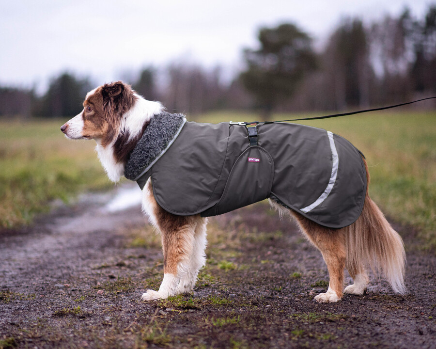 Vzdržljiv plašč, ki psu omogoča neovirano gibanje in se mu popolnoma prilega. Z odprtino za rep in pripenjanje na ovratnico, velikim ovratnikom ter odsevnimi trakovi. Pomppa plašči nimajo elastik za pričvrstitev na zadnje tačke, saj sama oblika in zasnova plašča omogočata popolno prileganje in pričvrstitev; na ta način psu omogočajo popolno svobodo gibanja. Plašči so narejeni iz antistatičnih in vodoodpornih materialov (vodni stolpec 5.000mm). Vsi materiali so primerni za pranje v pralnem stroju in so hitro sušeči.